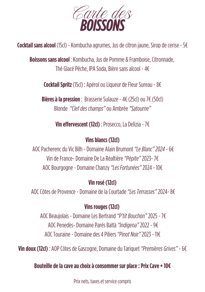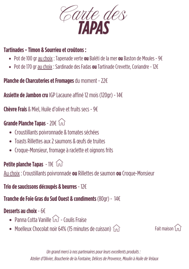 Cartes des Tapas et des Boissons